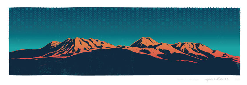 Tongariro Mountains Pano - From an original Lino cut